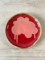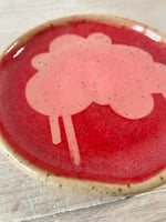 Made on my pottery wheel with a warm speckled stoneware clay. A red wash sits in the centre of the spoon rest. A pink drippy cloud sits on top of the red wash. Designed to catch all the drips in your life.