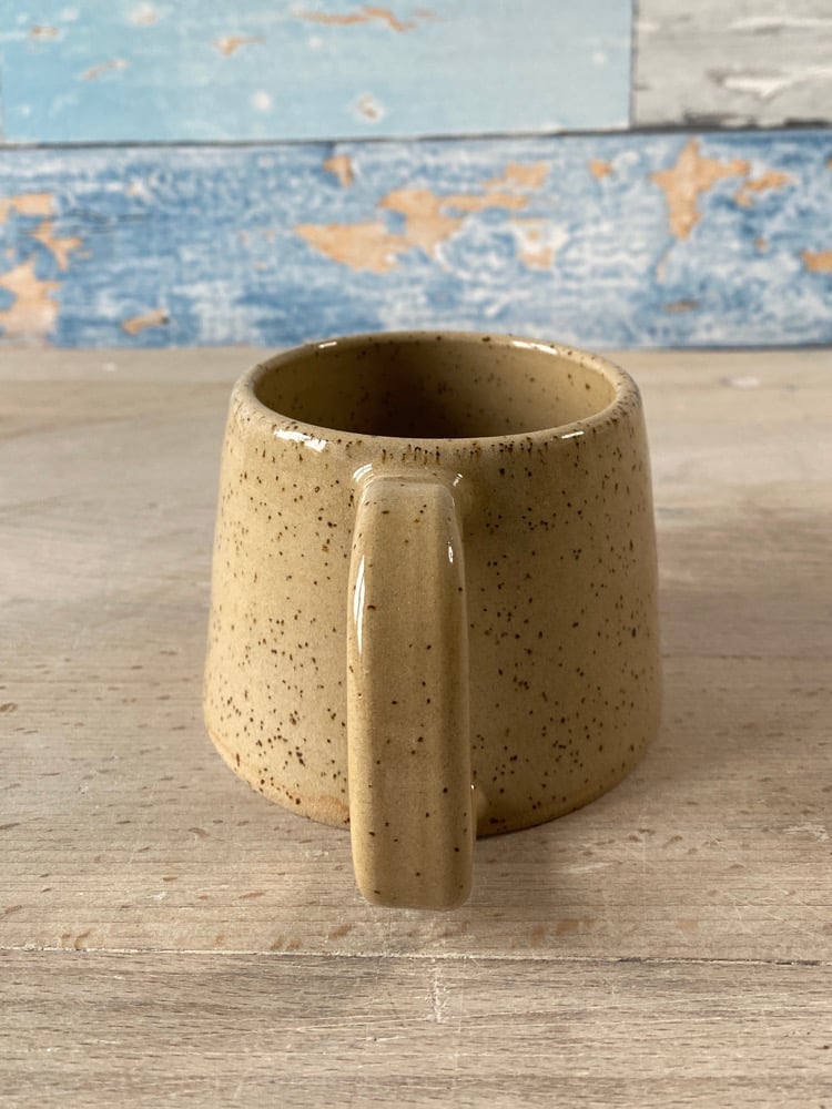Handmade speckled clay mug.